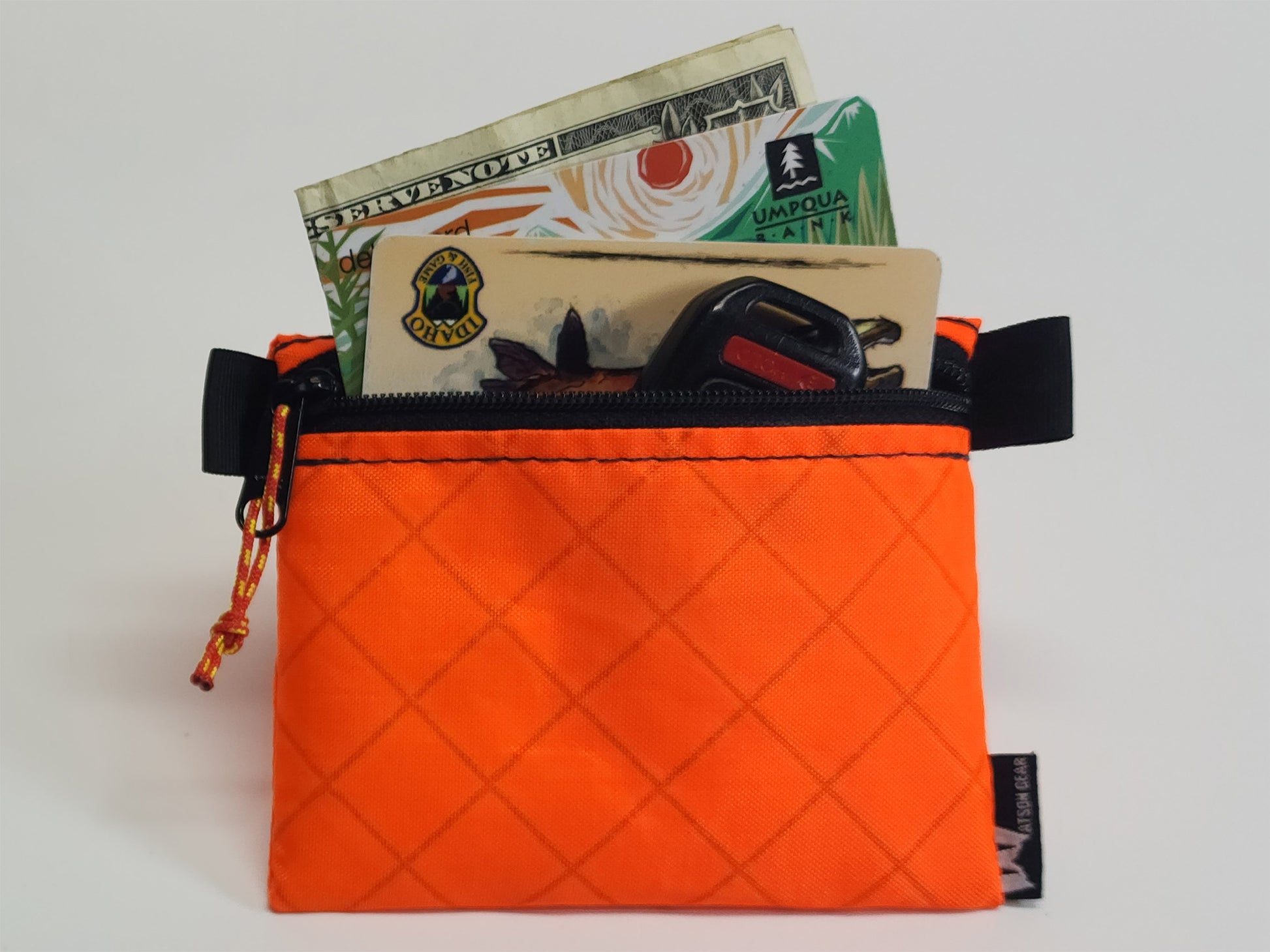 Ultralight and durable hiker zip wallet pouch made from the New Challenge Outdoors recycled ECOPAK materials.