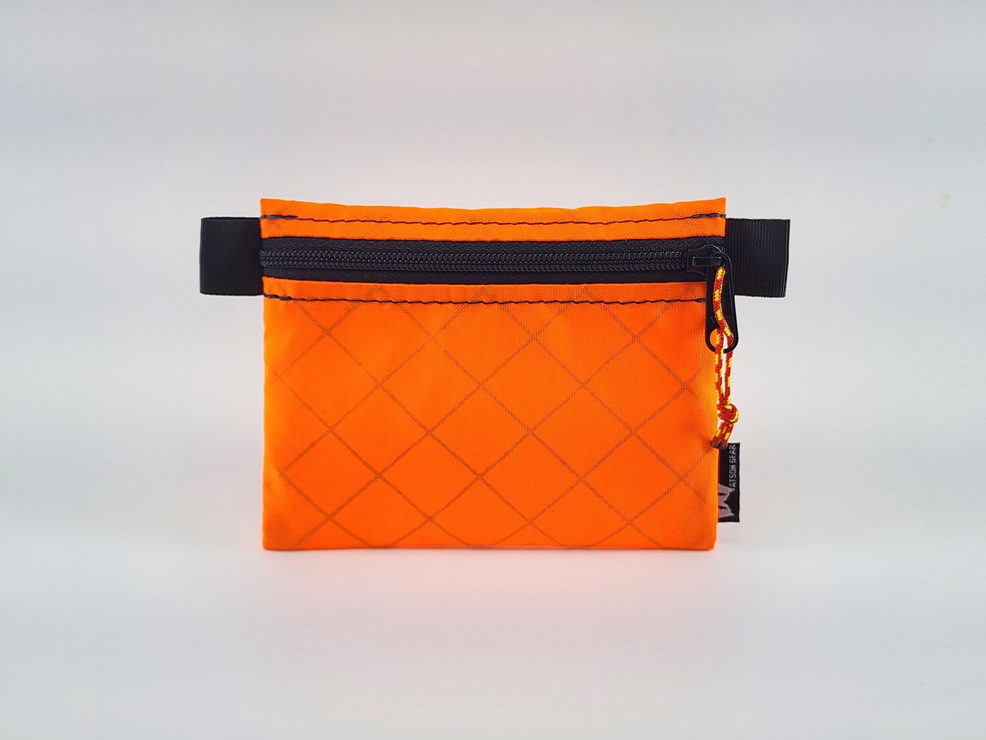 * Orange wallet is made from Challenge EPX200. This material consists of a 70d ripstop face, 45° Blue Cross Ply and a 70d ripstop backing. Weight increases to 9.7g with the ripstop backing and seams are bound with a serger instead of taping.